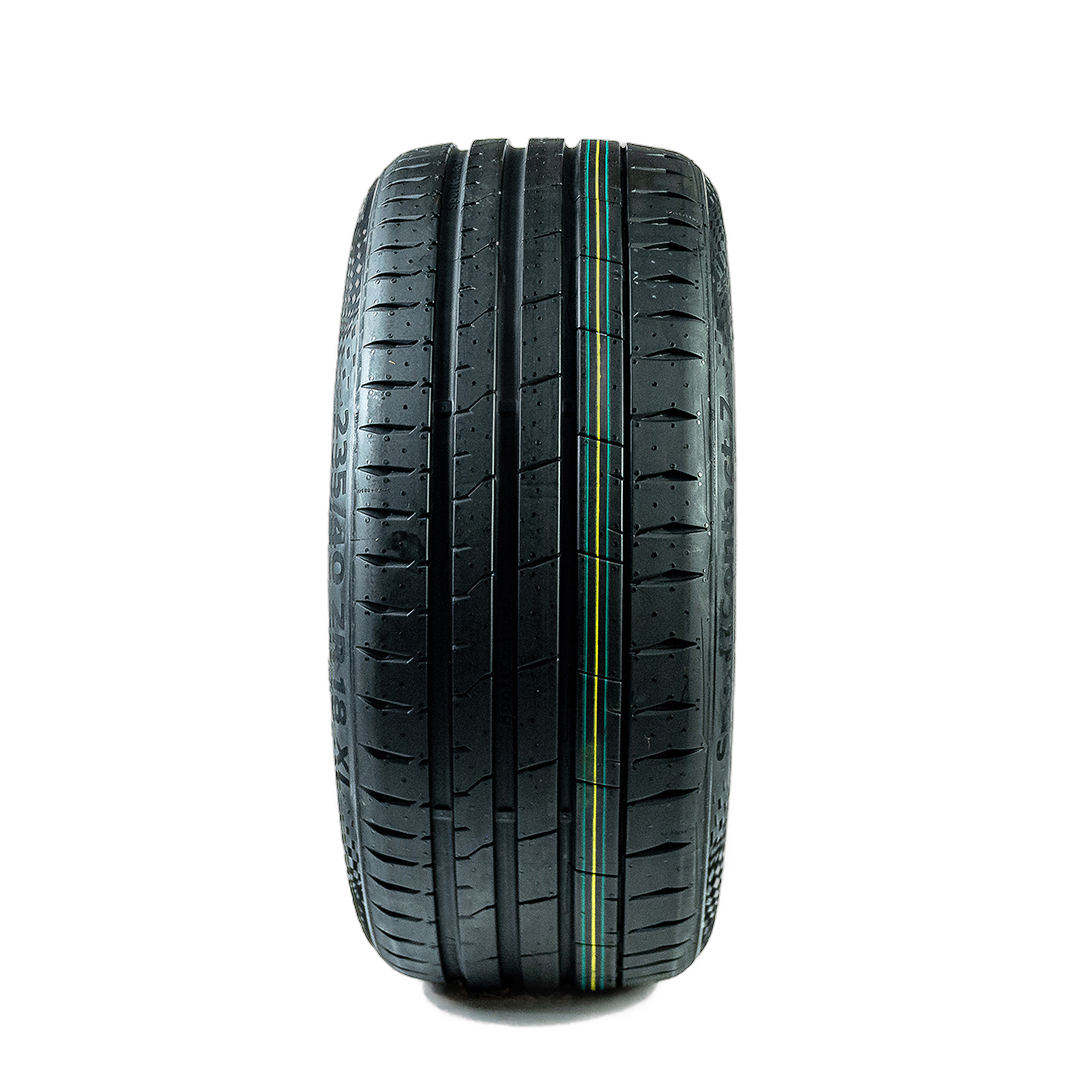 O 265/30R22 97Y Continental SportContact 7 é a peça que faltava nesse quebra-cabeça. Ele foi desenvolvido para ser a interface definitiva entre a vontade do piloto e a reação do carro, transformando seu veículo na extensão do seu corpo. Este não é apenas um pneu — é um manifesto de performance e confiança, projetado para o uso extremo em ruas e excelente para track days amadores.